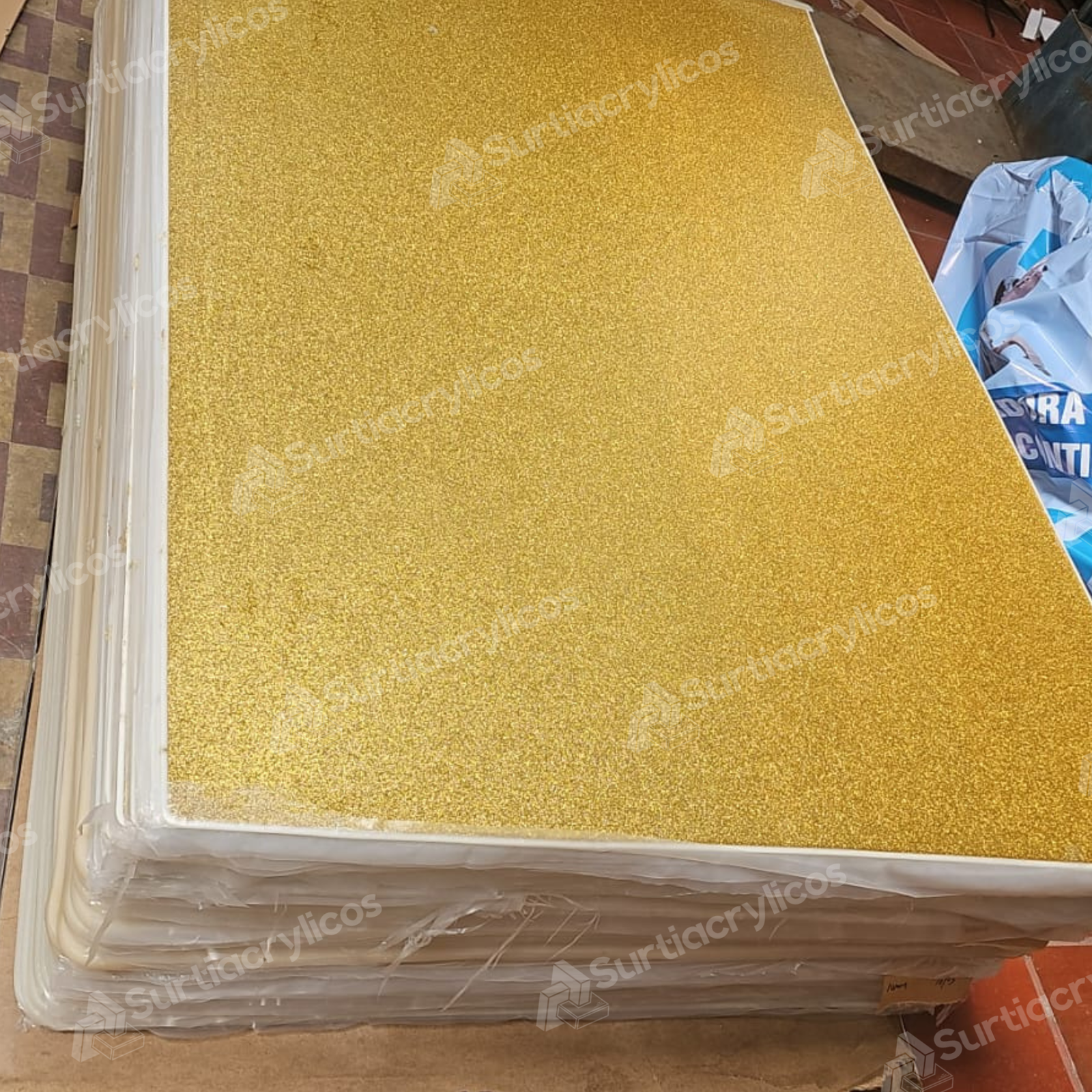 Acrílico escarchado dorado